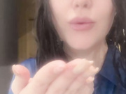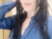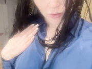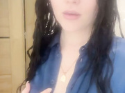Sexy horny girl play with nipples in silk blouse